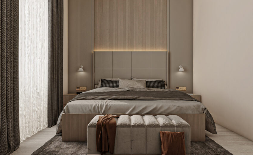غرفة نوم بتصميم مودرن فاخر – بيج