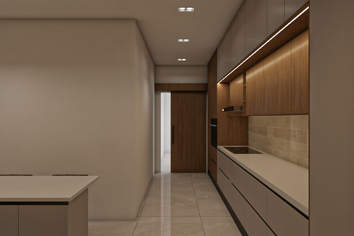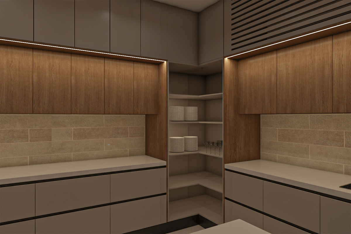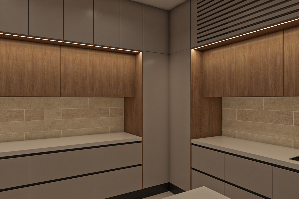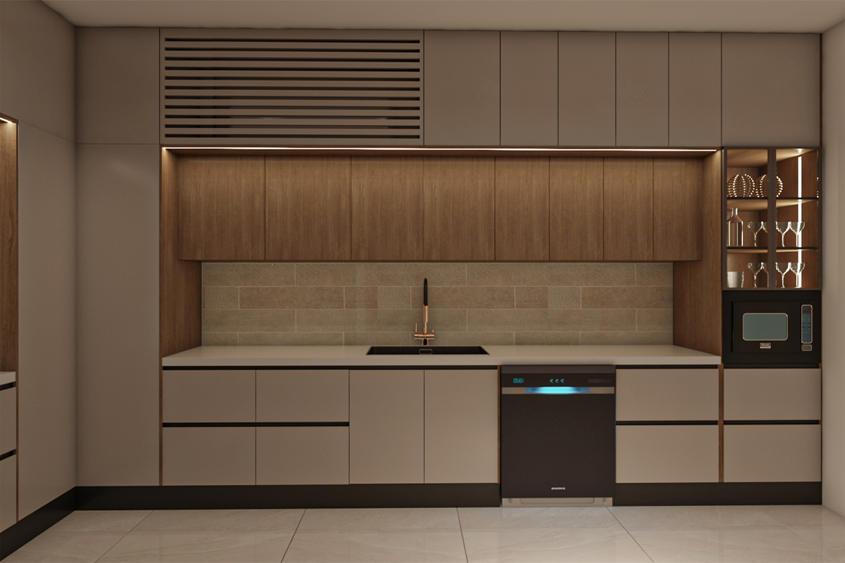 مطبخ بتصميم مودرن مع جزيرة – جريج*خشبي