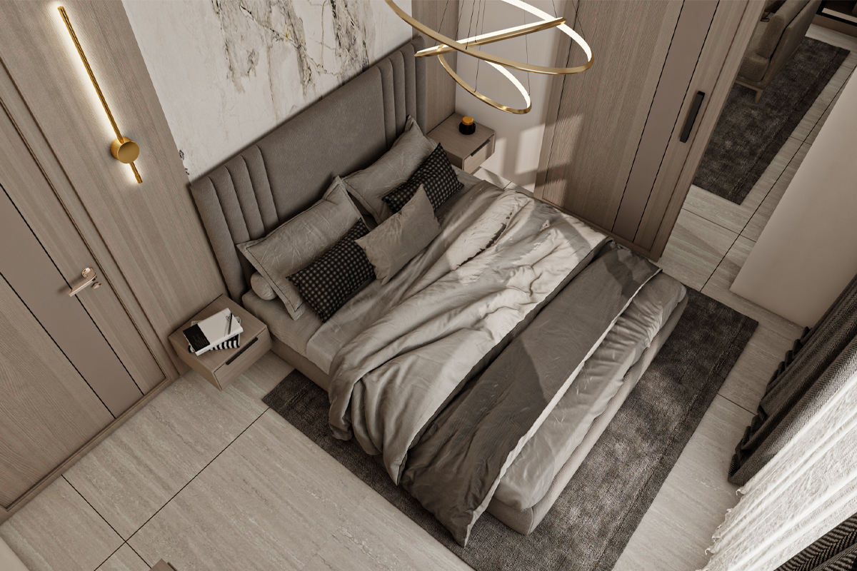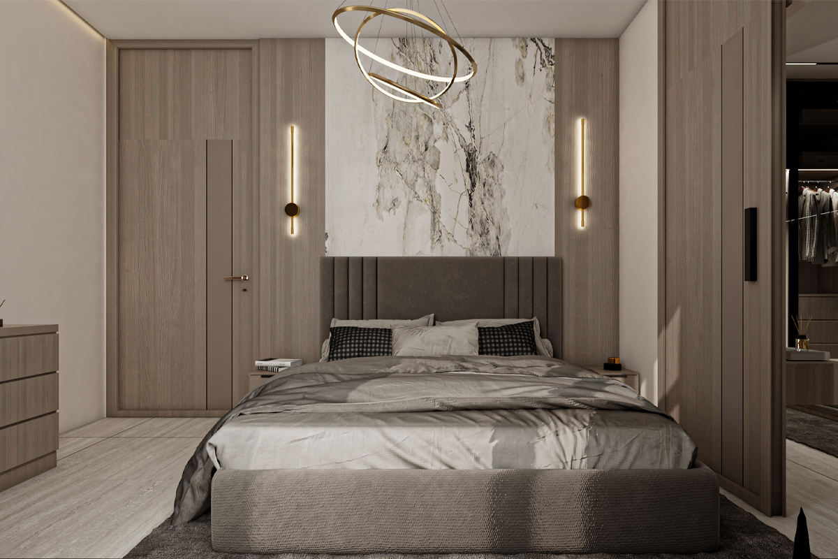 غرفة نوم بتصميم مودرن فاخر – بيج
