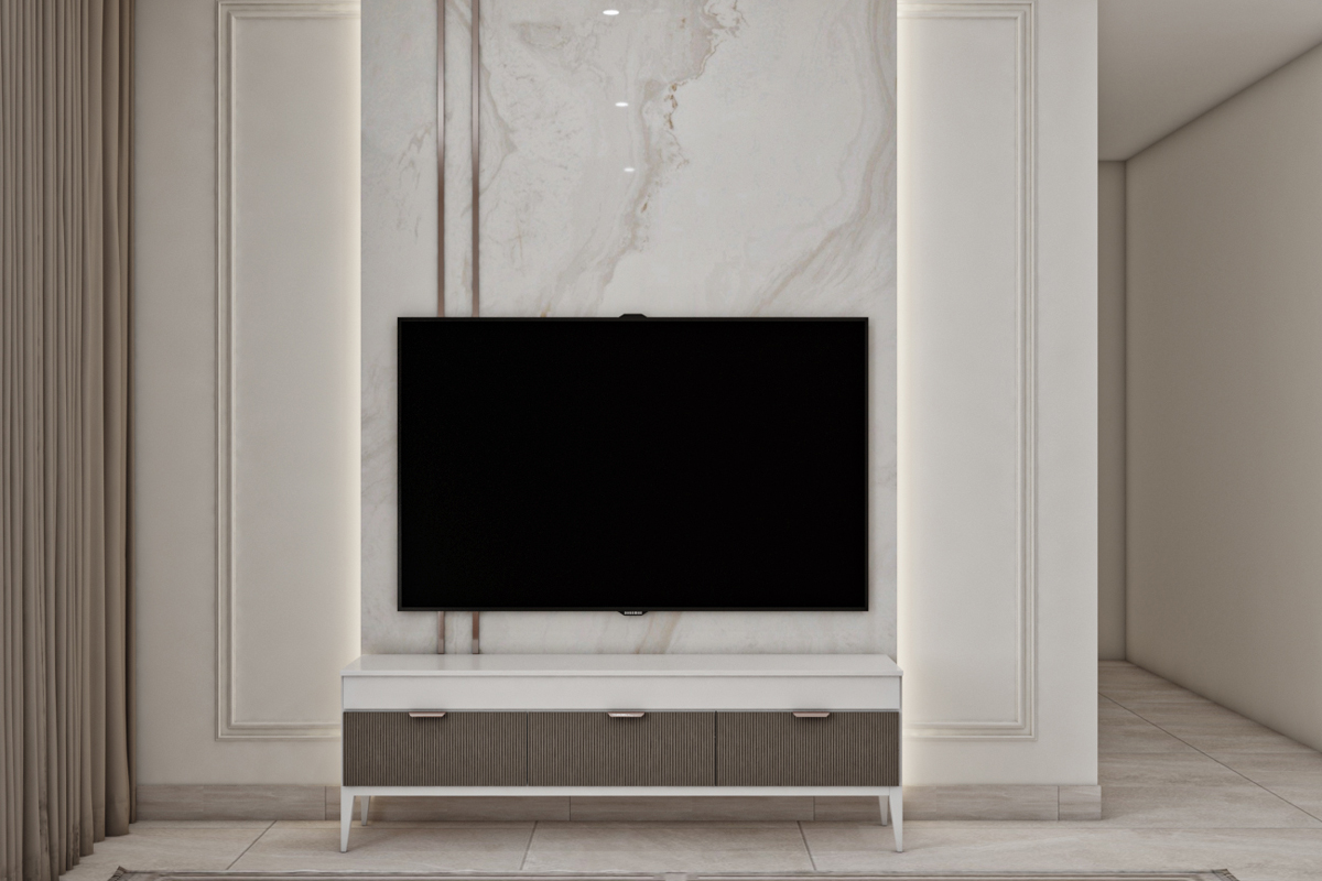 وحدة تلفزيون أرضية بتصميم نيوكلاسيك مضلع – جريج داكن